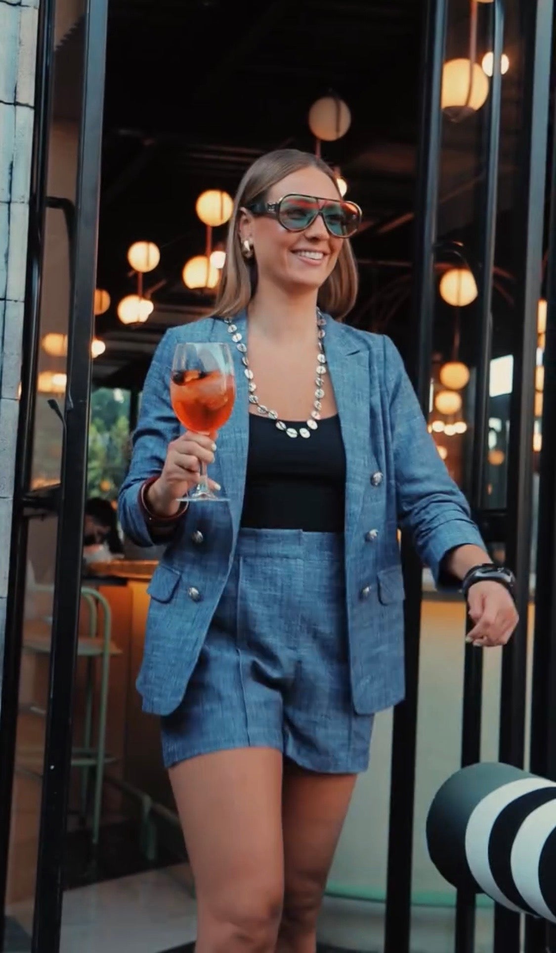 SET SACO DENIM MANGA PLISADA Y SHORT